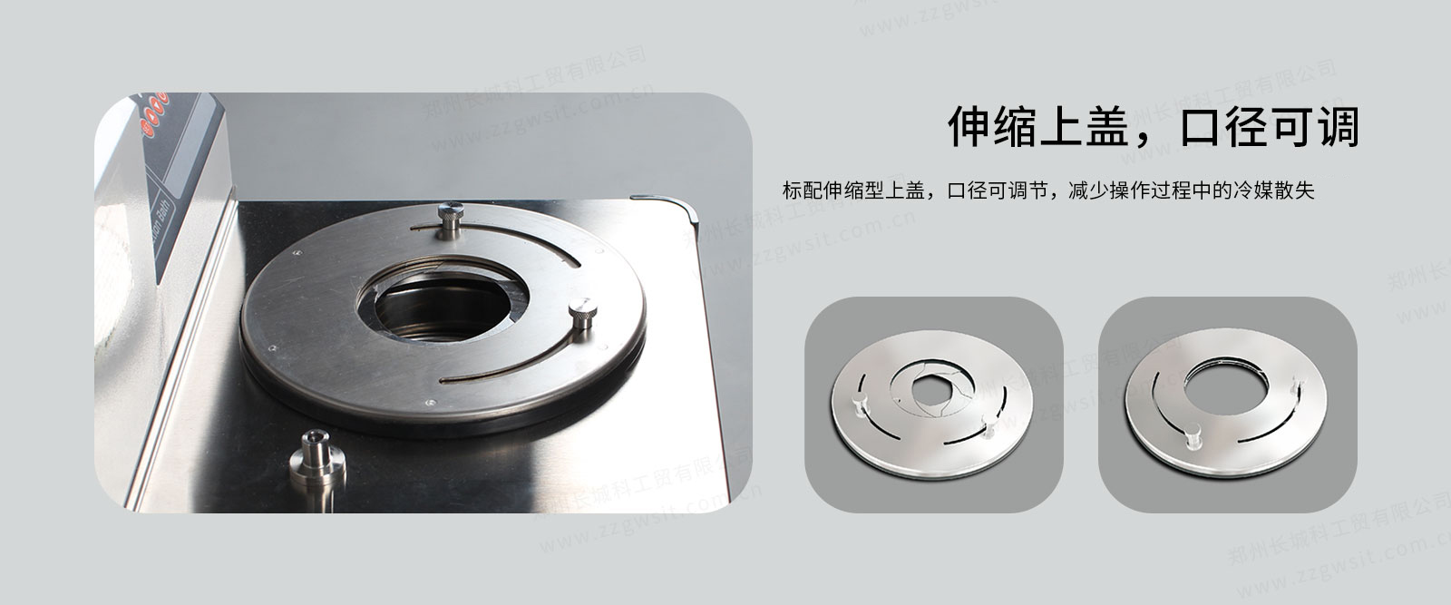 ●配置的伸缩盖可以调整开口大小,适应反应容器的大小,减少冷冻液的挥发以及与外界的热交换;